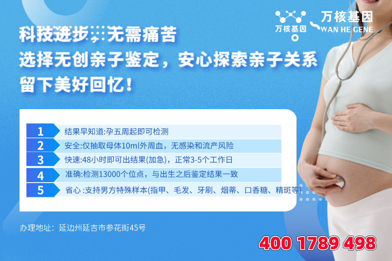 延边亲子鉴定受理咨询中心是一家专门提供亲子鉴定服务机构,目前联合了多家权威法医物证司法鉴定及基因检测公司的亲子鉴定服务咨询机构。延边办理地址:延边州延吉市参花街45号(如需办理,需提前预约)预约电话:4001789498,在全国各地都设有亲子鉴定分部受理点及联系方式,常年为国内外客户提供专业权威的DNA亲子鉴定服务。轻松办理亲子鉴定、个人亲子鉴定、移民亲子鉴定、上户口亲子鉴定、亲缘亲子鉴定、孕期亲子鉴定(孕5周即可检测,安全放心,保护客户隐私,覆盖全国)报告国内外通用,正规亲子鉴定机构。